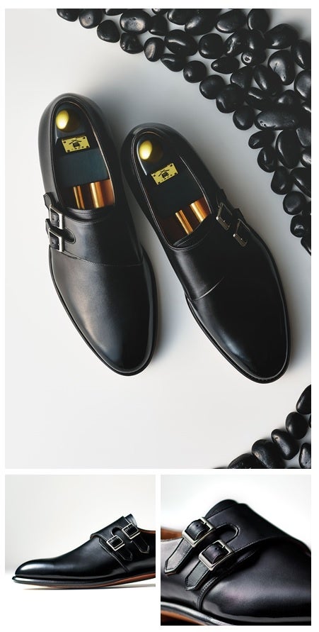 生みの親である関氏にあやかって“義”の字を受け継いだ一足。最大の特徴は、甲を覆うストラップ部分を細めにデザインし、斜めに流すようにしてバックルを配したデザイン。一般的なダブルモンクに比べて、よりドレッシーなエレガンスが際立つ顔つきです。こだわったのは、甲部分のフィット感。ストラップが細いぶん、アッパー全体でしっかりとホールドすることで履き心地のよさを維持。秘訣は、R2010の派生形で本来はスリッポン用に開発された木型「R2010S」ラストです。甲部分をやや低めに抑えることでホールド感を高めたこのラストは、本作「謹製 義之丞」にも最適。屈曲性の高い「フレキシブルグッドイヤーウェルト製法」ともあいまって、抜群のフィット感を叶えています。