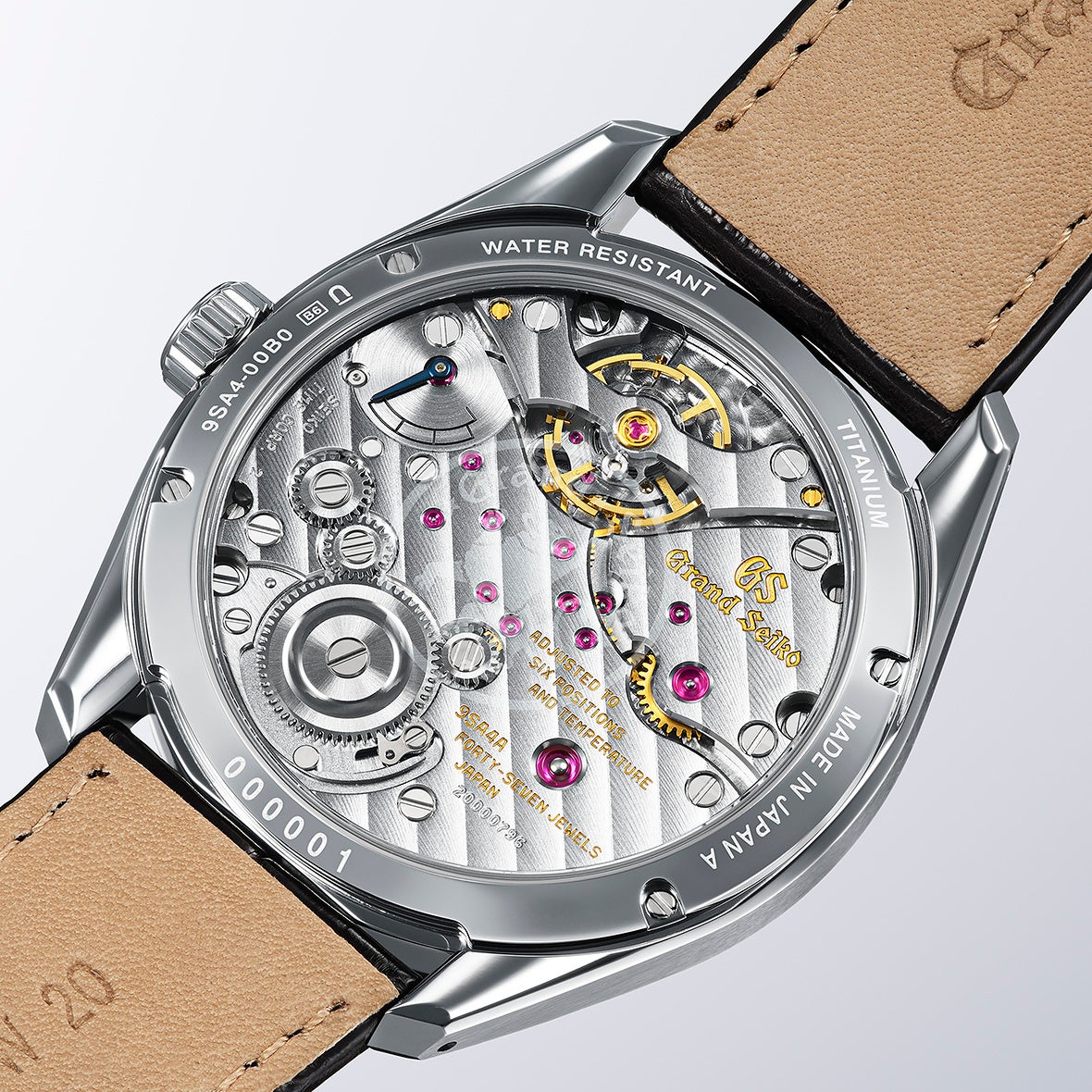本作は裏ぶたをシースルーバック仕様とし、特徴的な「こはぜ」の動きとともに、製造地の岩手県に位置する美しい雫石川の流れを表現したムーブメントのストライプ模様が、目を楽しませます。