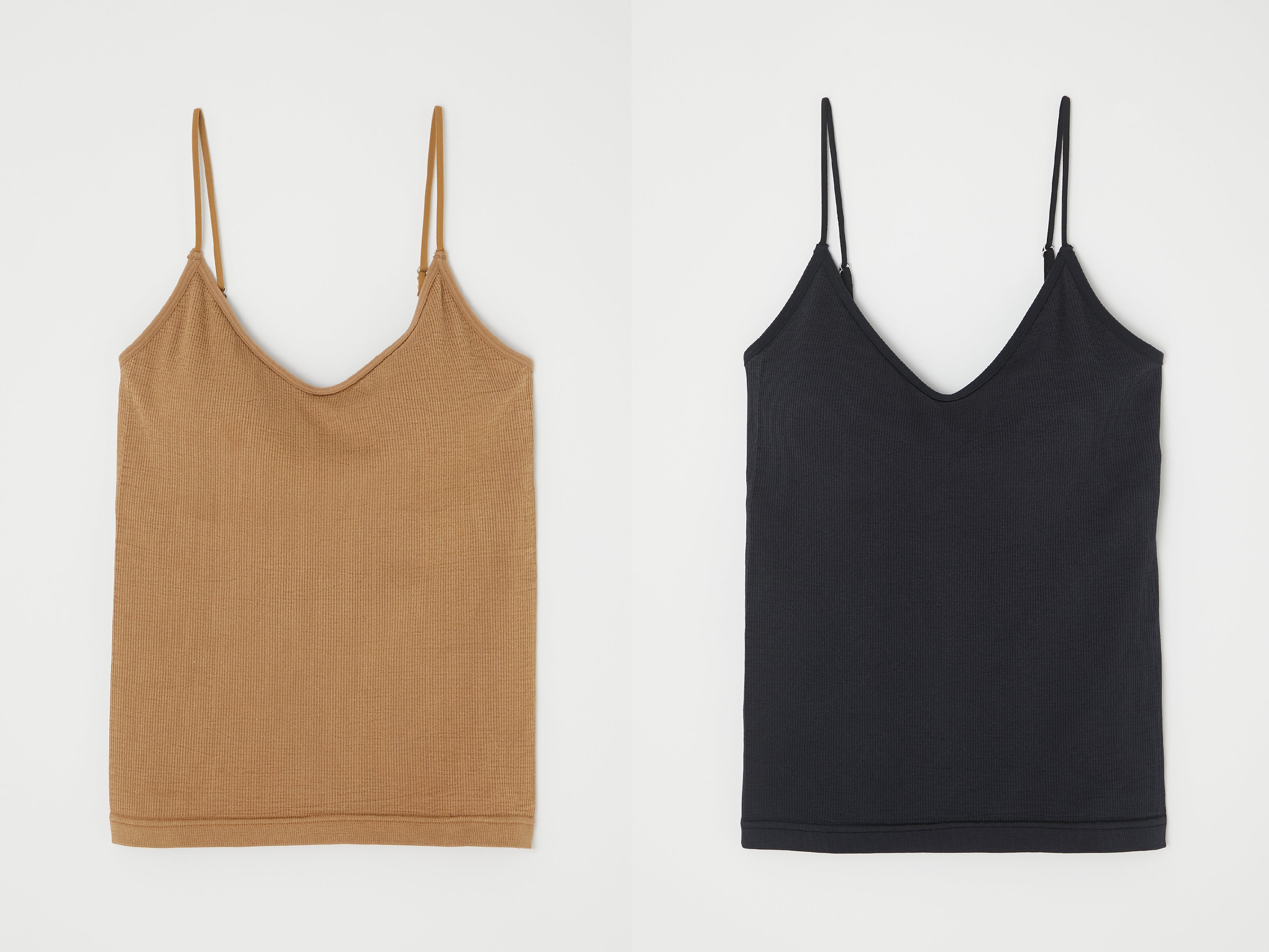 幅広い体型をキレイに見せるようこだわったオリジナルのブラカップは2サイズをご用意。今までブラトップやトップスに採用してきましたが、今回はキャミソールとして登場し、インナーとしても活躍してくれる。