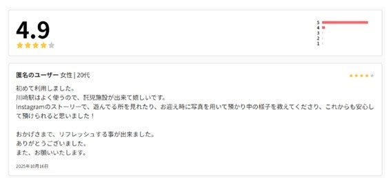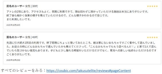 オープンから一週間、多くの方にご利用いただいております。高評価レビューもいただいておりタクステの提供価値を実感すると共に、より多くの子育て世帯へ届けたいと一層感じております。