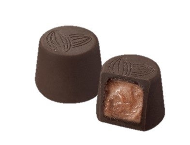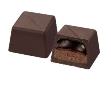 ダークチョコレートとラズベリーの酸味がさわやかな味わいのガナッシュをダークチョコレートで包み、カカオ豆のエンブレムで飾りました。