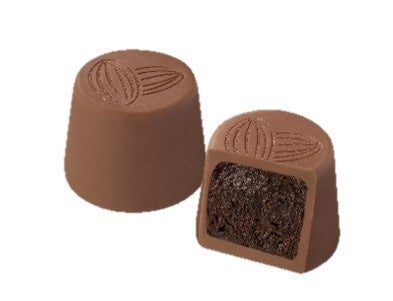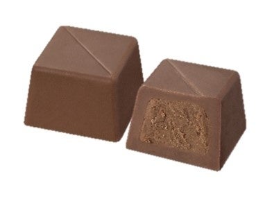 カカオ72%ダークチョコレートとコーヒーガナッシュをミルクチョコレートで包み、カカオ豆のエンブレムで飾りました。
