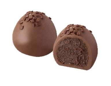 ペルー産カカオの力強い風味を楽しめるダークチョコレートガナッシュを、口どけなめらかなミルクチョコレートで包み、ラインでデコレーションしました。