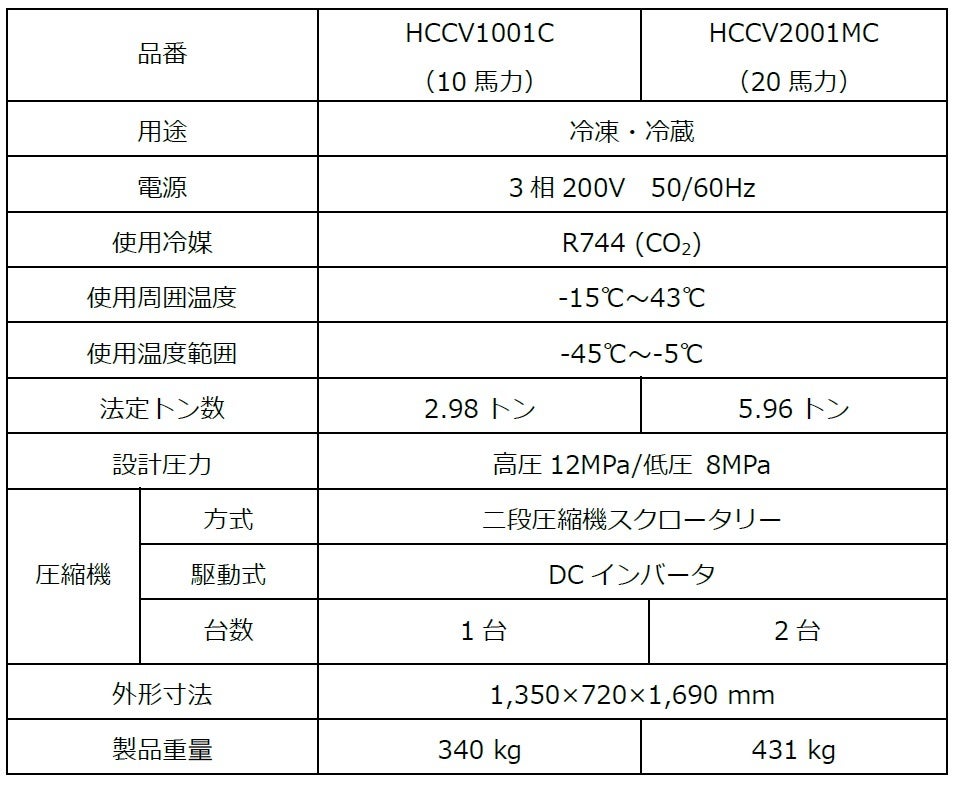 三菱重工グループの三菱重工サーマルシステムズ株式会社(社長:佐々倉 正彦、本社:東京都千代田区、以下、三菱重工サーマルシステムズ)は、業務用CO2冷媒冷凍冷蔵コンデンシングユニット「C-puzzle(シーパズル)」シリーズに、三菱重工サーマルシステムズ独自の新システム「M-DIOMAC(エムディオマック)※1」に対応した10馬力の「HCCV1001C」と20馬力の「HCCV2001MC」を新たに追加し、2024年夏から販売を開始します。本製品は、冷凍冷蔵設備業者のニーズである導入簡略化に対応したものです。
