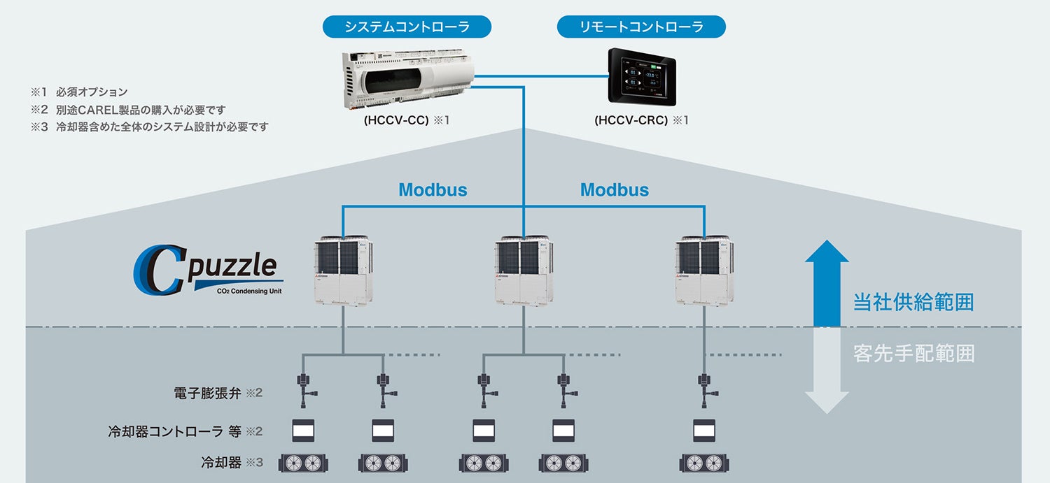 ※3 別途、三菱重工サーマルシステムズが指定するコントローラメーカ「CAREL INDUSTRIES S.p.A.(キャレル)社」からの製品購入が必要となります。