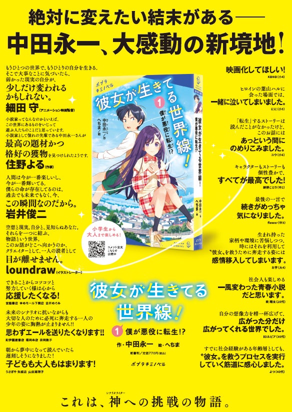 細田守監督、住野よる氏推薦! 人気作家・中田永一4年ぶりの新作にして初の児童文庫書き下ろしシリーズ『彼女が生きてる世界線!①』発売!