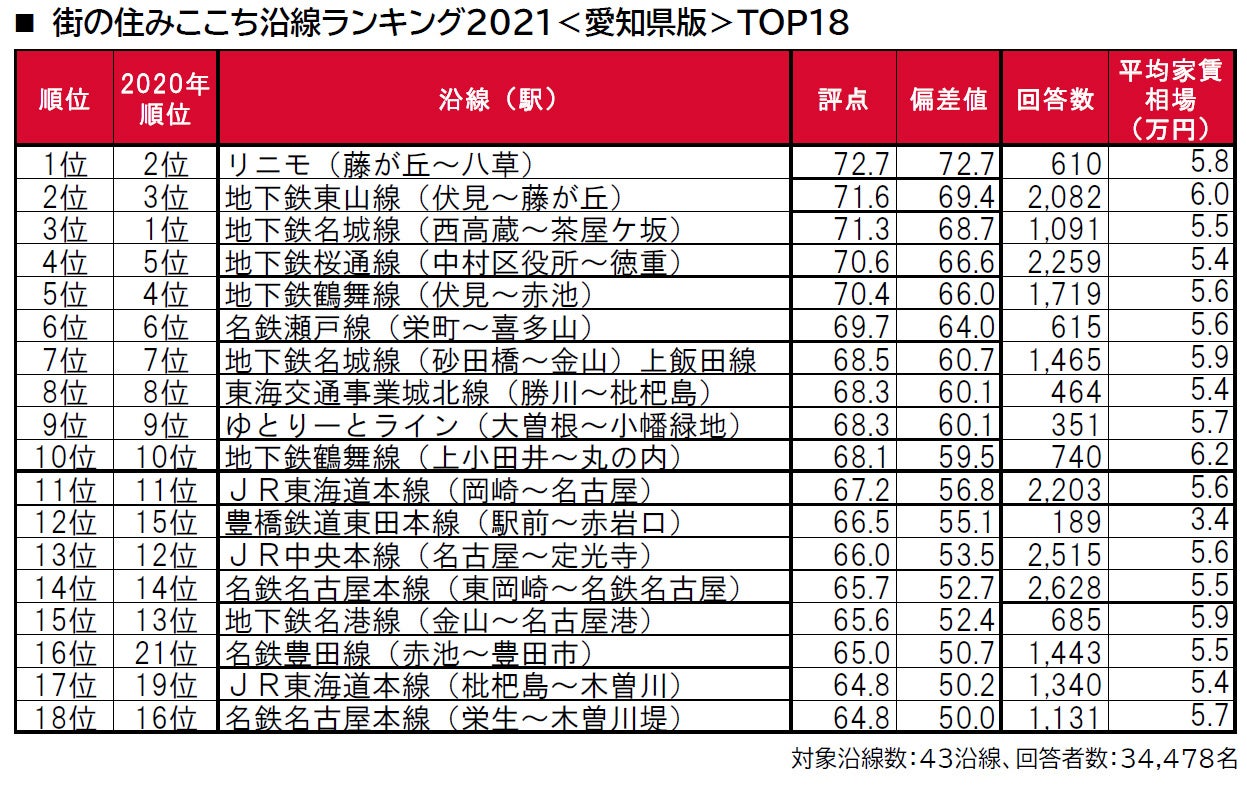 - 街の住みここち沿線ランキング2021<愛知県版>上位の分析 <総合1~3位>