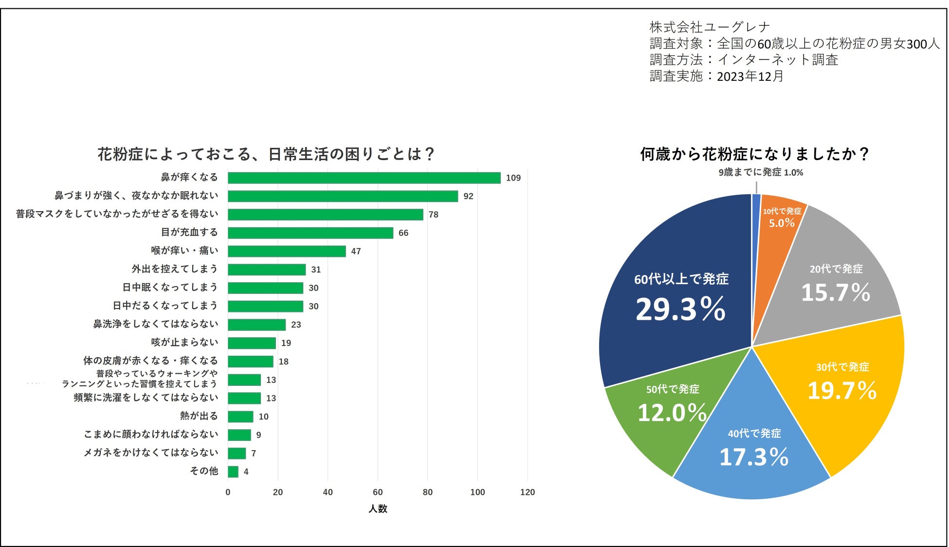 株式会社ユーグレナ(本社:東京都港区、代表取締役社長:出雲充)は、年々高齢化が進む日本において、シニアの花粉症との向き合い方に注目しました。「シニアは花粉症にならない」という通説を耳にすることもあると思いますが、それは果たして事実なのでしょうか?
