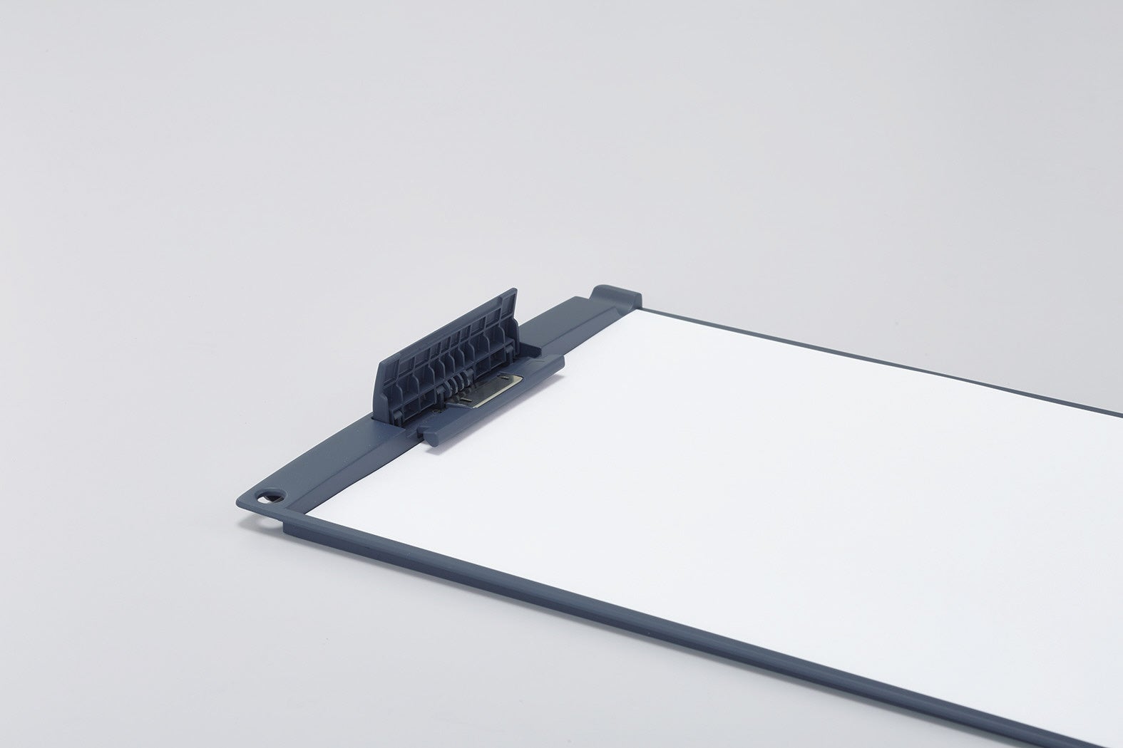 クリップの高さは約13mmとなっており、当社従来品(※クリップボードH)と比較し薄型化を実現しました。備品としてストックする際も、かさばらずスリムに収納できます。クリップの面積も従来品より小さいため、書類を隠す面積が減少し筆記時の閲覧性も良くなっています。
