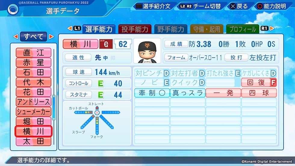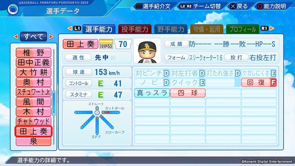 今回のアップデートで、NPB支配下登録となった横川 凱選手(巨人)や近藤 大亮選手(オリックス)ら計11名が新たに使用できるようになるほか、最新の選手データで遊べるようになります。