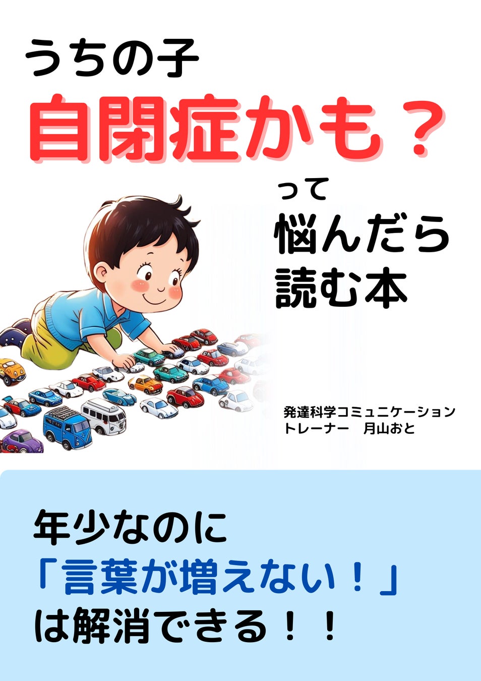 はじめまして 発達科学コミュニケーショントレーナー月山おとです。おうち療育で年少さんの言葉を伸ばす専門家として活動しています。この度は、年少なのに 「言葉が増えない!」 は解消できる!!うちの子 自閉症かも?って悩んだら読む本 の電子書籍をリリースいたしました。