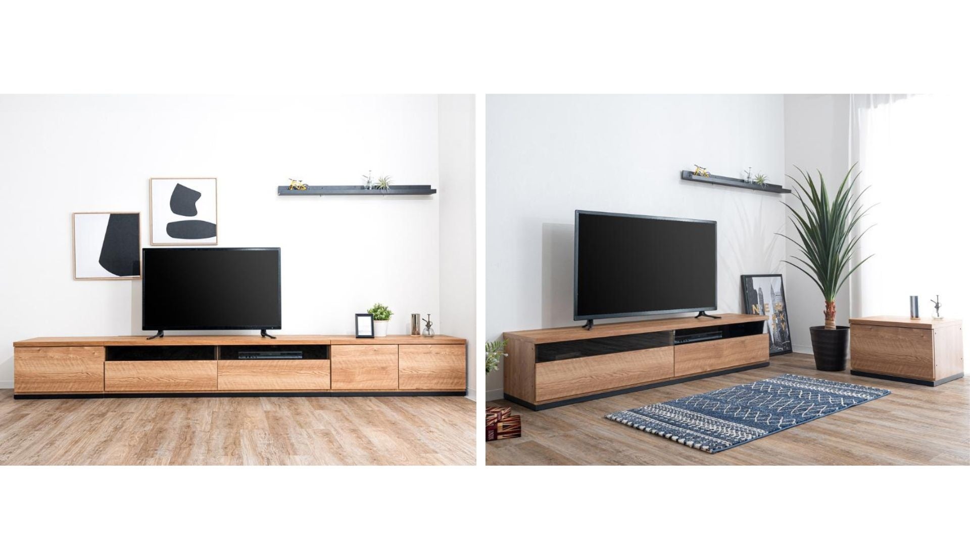 「壁面に合わせて幅広のテレビボードを置きたい」「テレビ周りの小物をまとめてリビングをすっきりさせたい」「大きめのテレビに合わせたテレビボードが欲しい」というお客様にぴったりの、幅が選べる「分割しても使えるローボード」をこのたび発売いたしました。