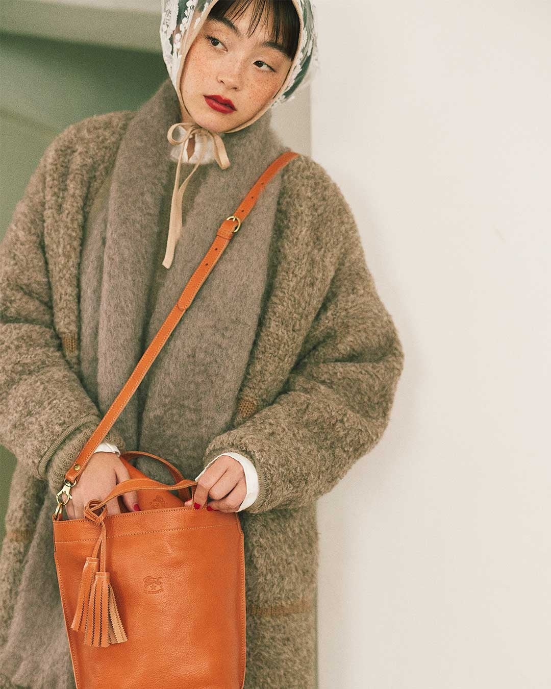 長く使い続けることで味わいと輝きを増すイル ビゾンテのレザーグッズ。モトーラ世理奈さんと一緒に、心が伝わる贈りものを選んでみませんか。