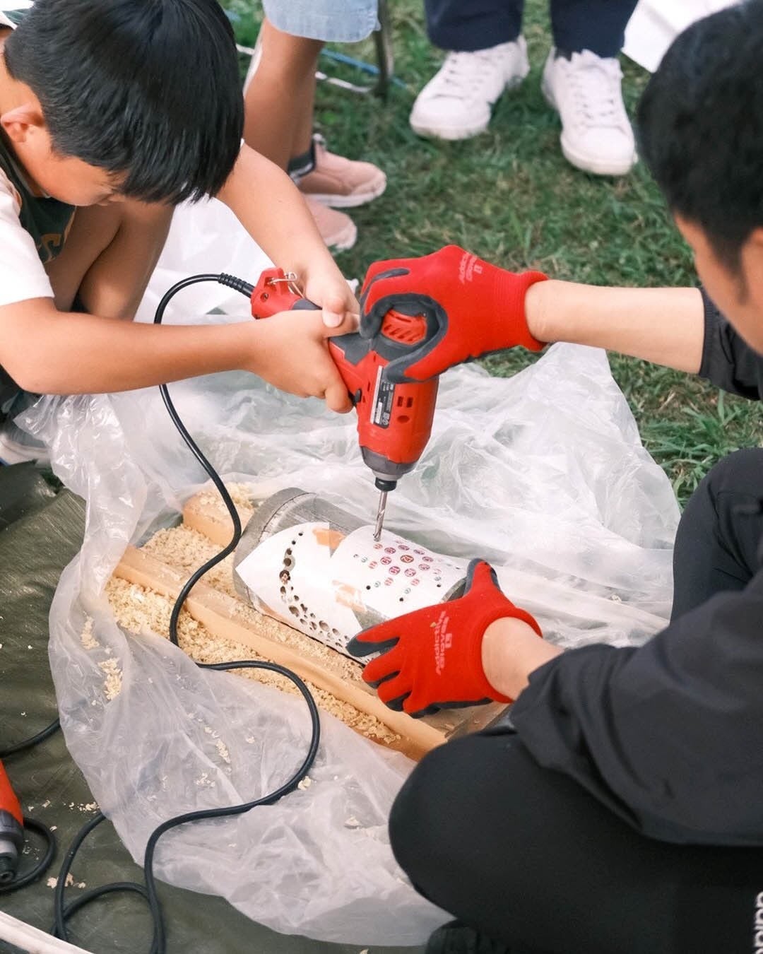 竹筒に穴を開け、模様をつける内容で、完成した竹あかりは当日持ち帰り可能です。