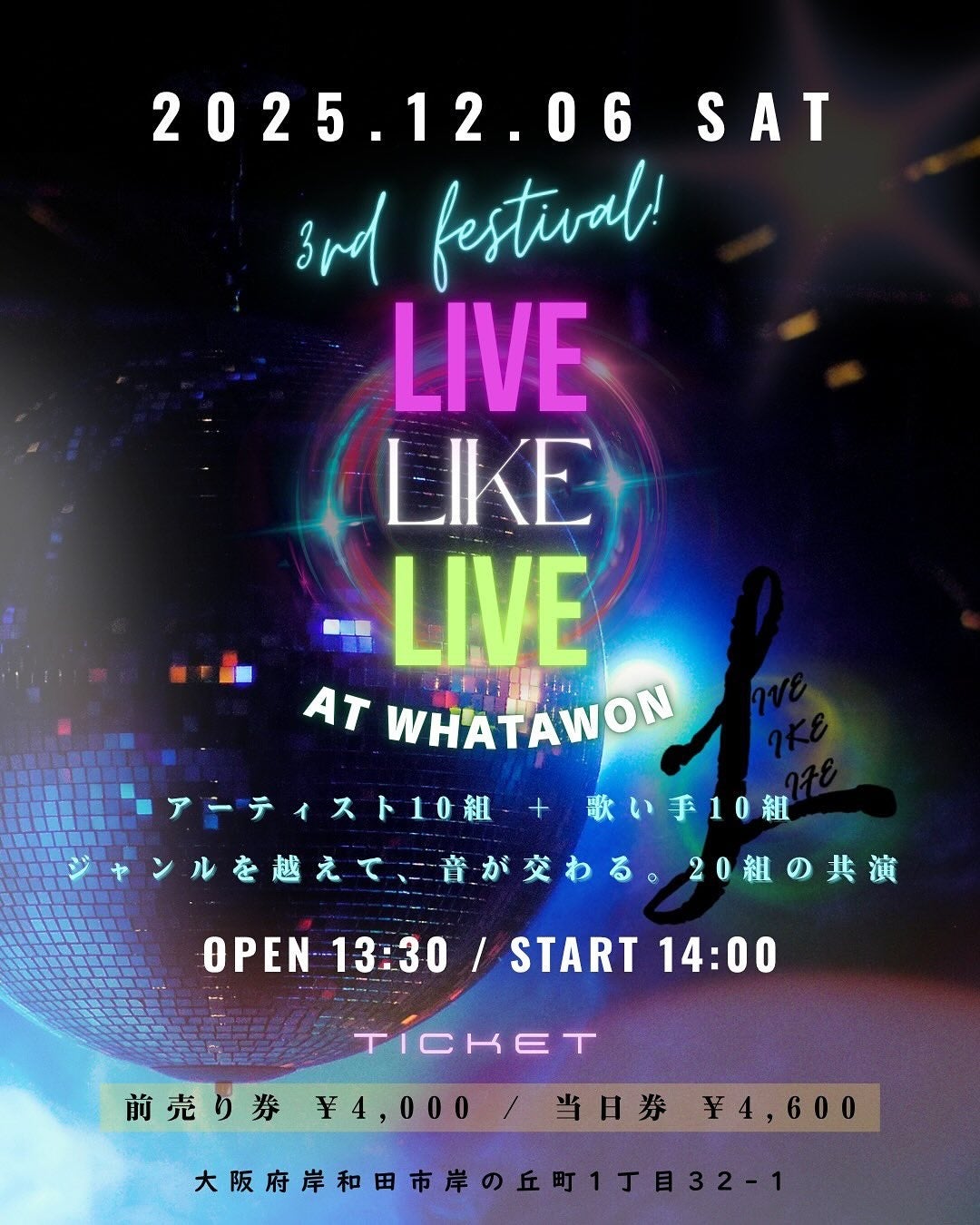 12月6日(土)は、WHATAWON内ホールにて音楽イベント「LIVE LIKE LIFE – 3rd Festival –」 も開催します。