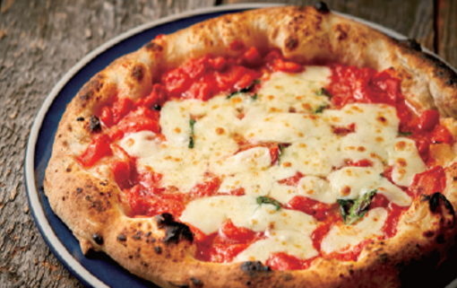 PISOLAのピッツァは熟成・発酵させた生地を手でのばすところから作る本格派のナポリピッツァ。専用の窯を使い、450℃以上の高温で1分〜2分という短時間で焼き上げるため、香ばしい小麦の風味があり、生地には適度な水分が残るため、もっちりとした食感が楽しめます。また、生地にもこだわっており、小麦本来の風味を残すよう、ごく僅かのイーストと天然酵母を選択。 生地を練り過ぎずにつないでいることで、歯切れのよい表面と、モチっとしたコルニチョーネ(ピッツァの縁部分)を生み、心地よい軽い食感を実現しています。