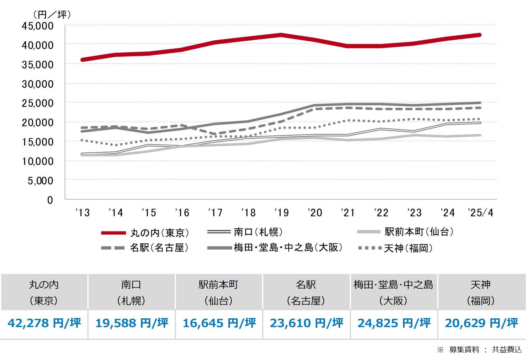 <募集賃料の推移(6大都市 大規模ビル・主要駅前地区)>
