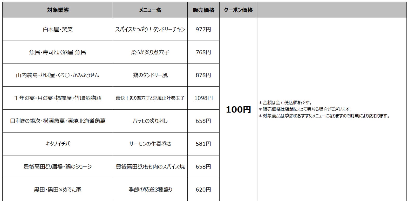 ②後日季節のおすすめメニュー100円クーポンをお届け!