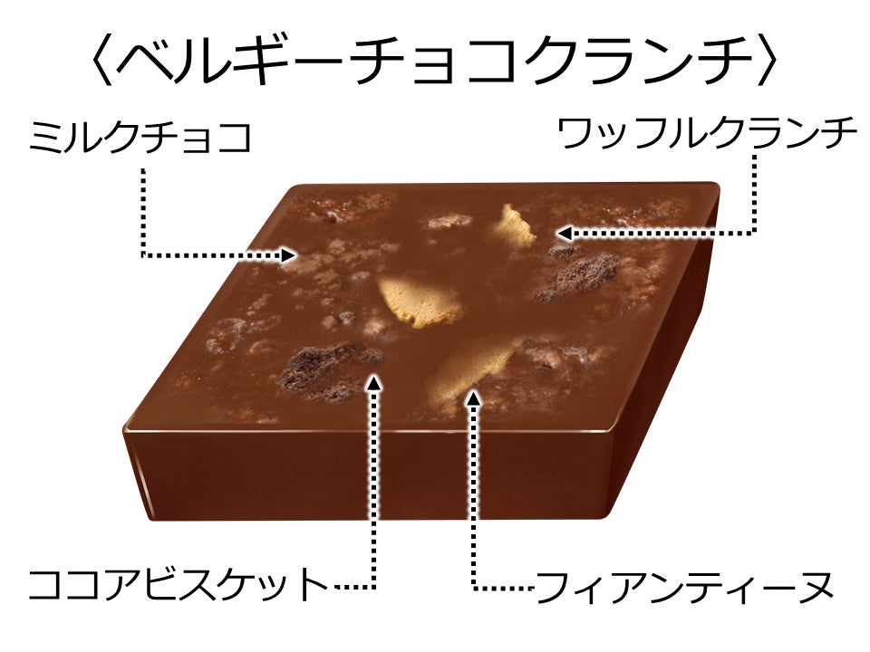 ベルギー産のチョコをワッフルクランチ、フィアンティーヌ、ココアビスケットと合わせ、ザクザク食感が楽しめます。2022年春に 限定発売した商品を、大好評につき全国で発売!