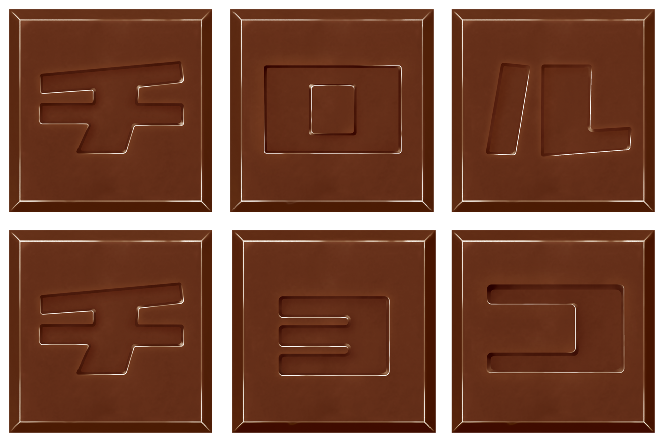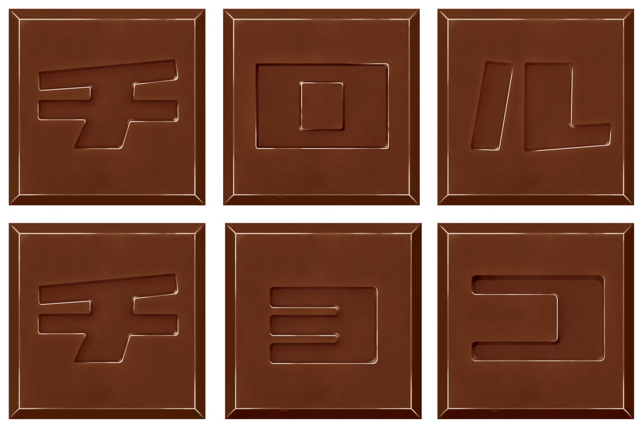 天面には「チ」「ロ」「ル」「チ」「ョ」「コ」の文字が書かれています。