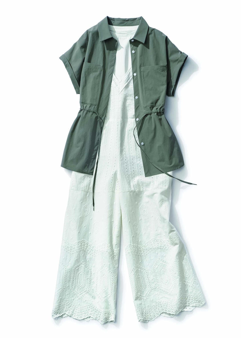 手持ちのお洋服に合わせていただくのはもちろん、夏のレジャーシーンにもフィットする着こなしを提案してます。カットソーにレースやナイロンの異素材をプラスして華やかなムードに。