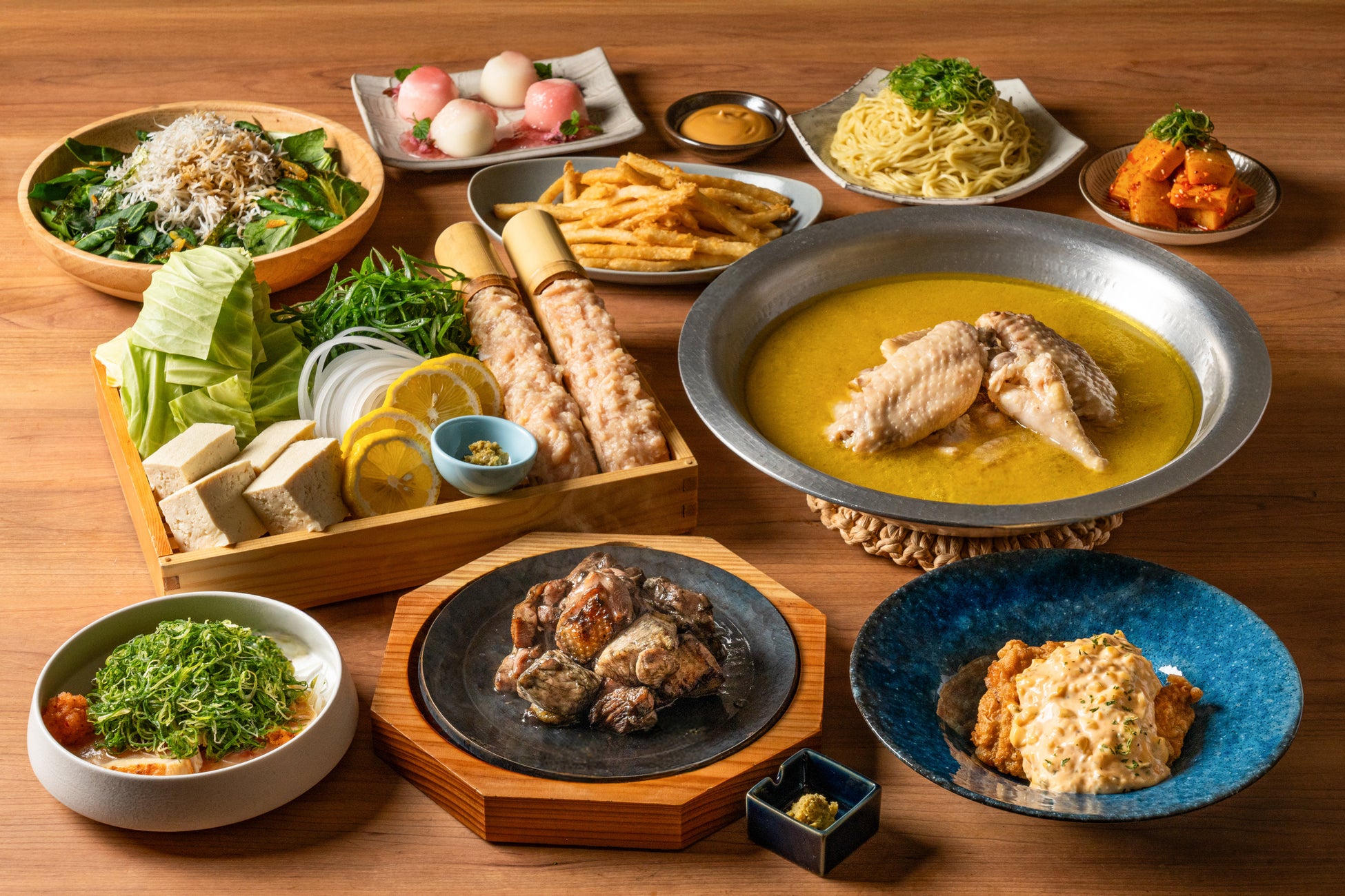濃厚なスープが魅力の「地鶏の水炊き」をメインに定番メニューを組み合わせた全9品。