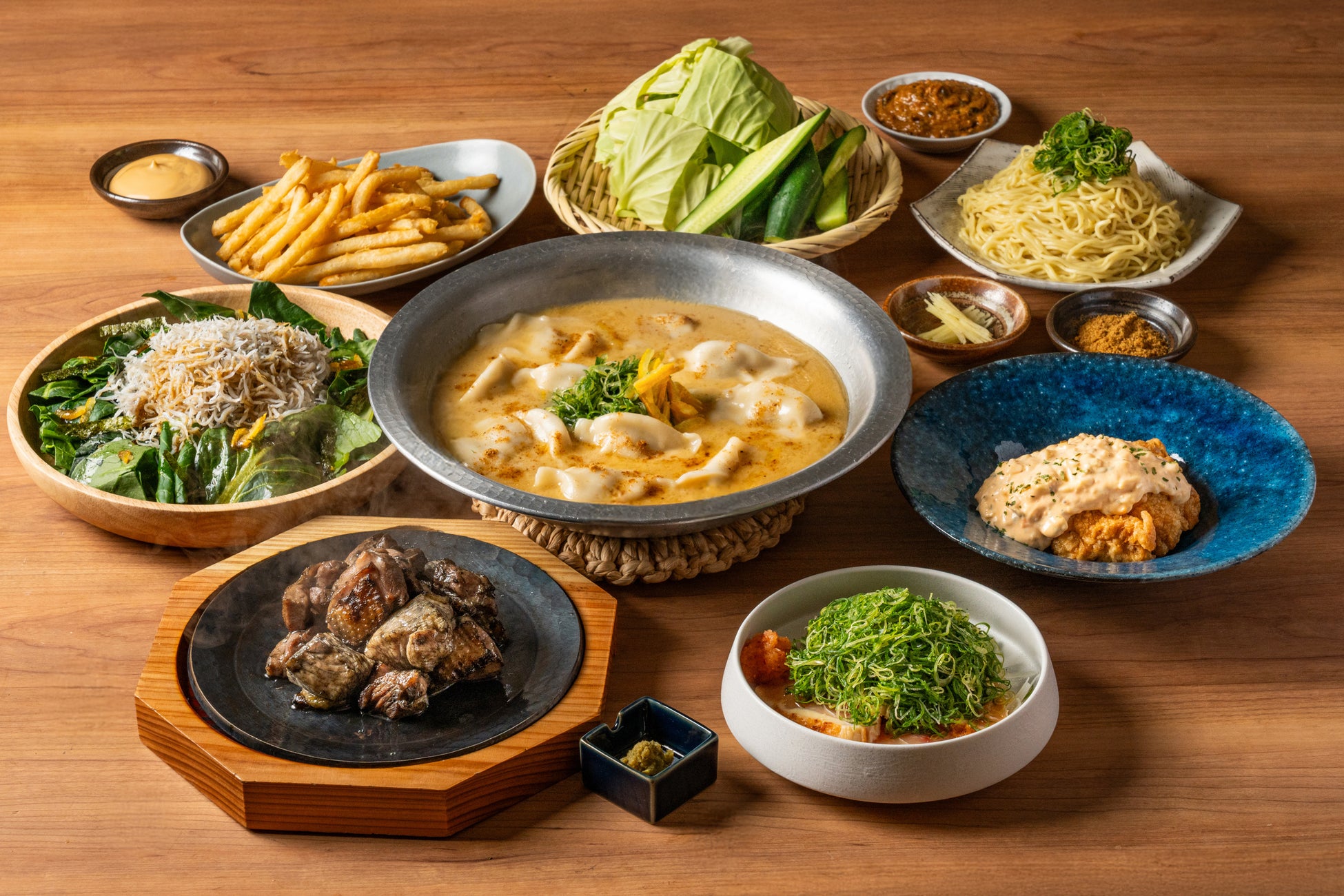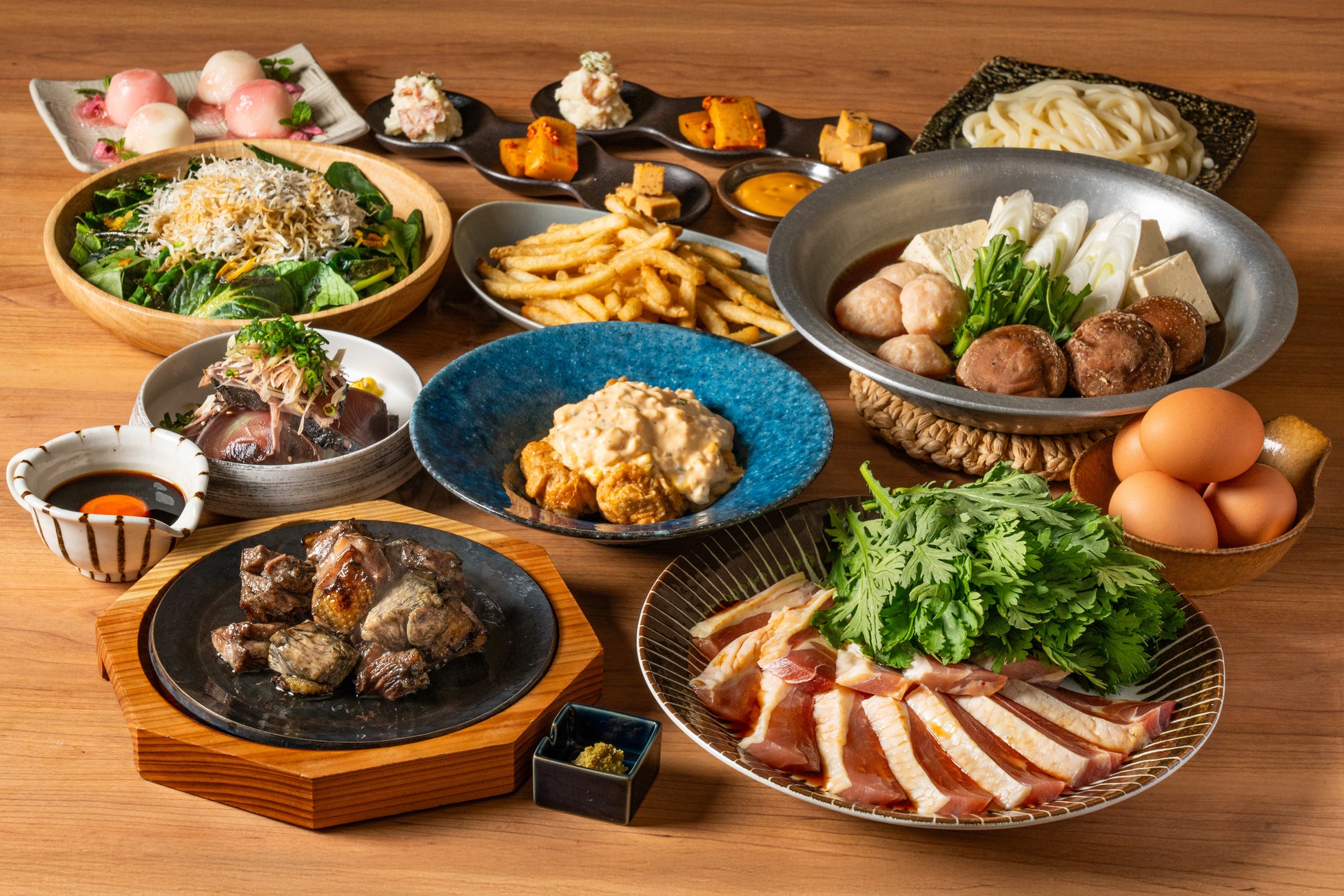 「炊き餃子」をメインに人気メニューを組み合わせた全8品の塚田農場の定番コース。