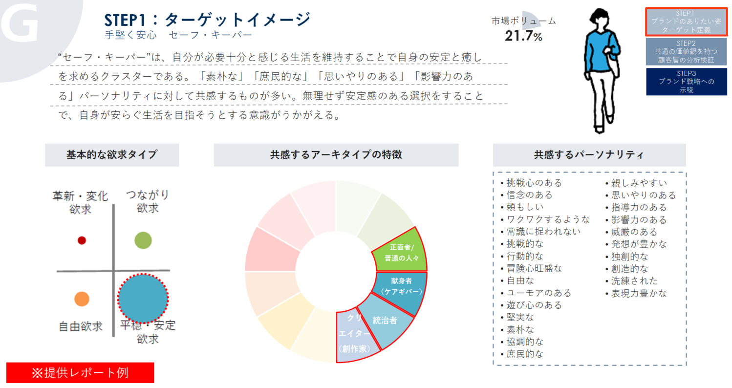 【特徴1】生活価値観、ライフスタイル変化の及ぼすインサイトの研究を基にした価値観クラスターを活用し、ブランドを支持する顧客層の潜在的な実態・ボリュームを明確にする