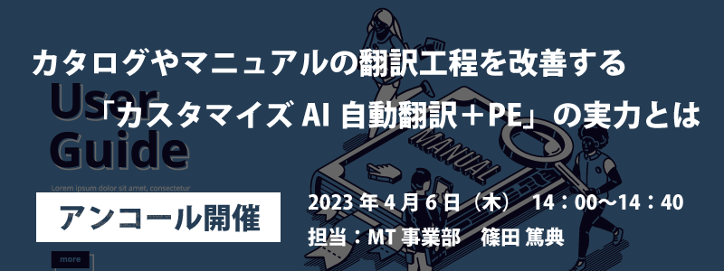 AI自動翻訳のロゼッタ ウェビナー『カタログやマニュアルの翻訳工程を改善する「カスタマイズAI自動翻訳+PE」の実力とは』4月6日(木)開催