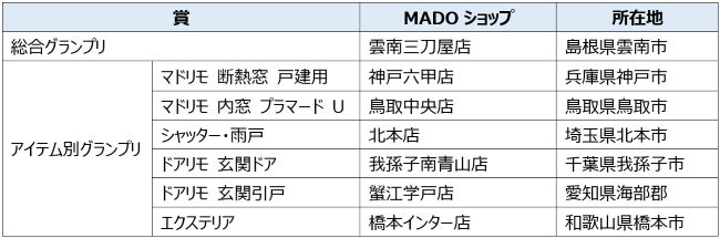 審査方法:全国のMADOショップ、MADOショップパートナーの投票によって総合グランプリ、