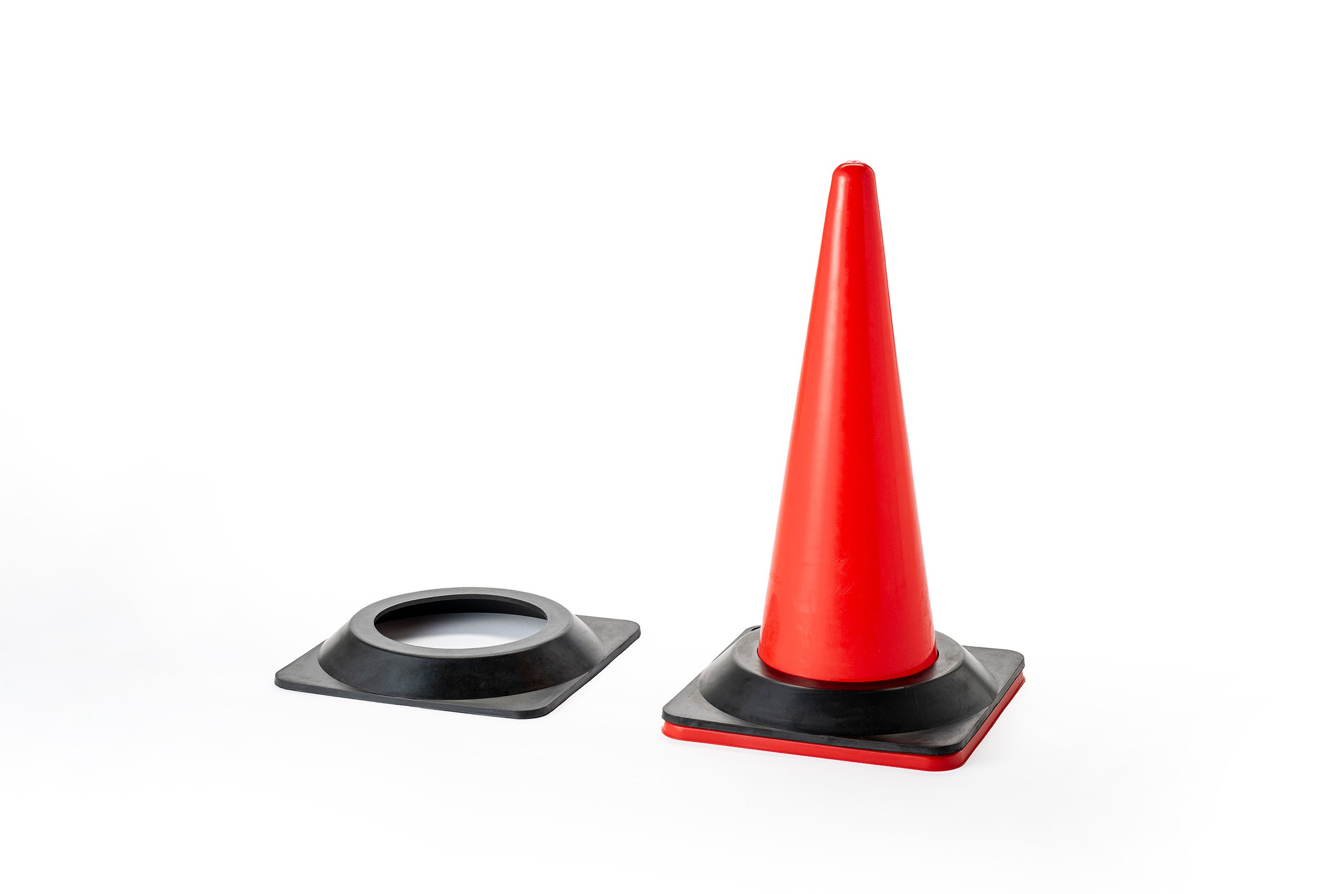 コーンに被せるコーンベット(重り)です。強度が低く劣化が起きやすい根元部分を覆う円錐形状で、紫外線や衝撃から発生する変色・ひび割れを防止し、買い替え頻度を削減することができます。素材にはタイヤをリサイクルした再生ゴムを採用しています。