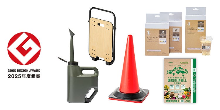 株式会社カインズ(本部:埼玉県本庄市、代表取締役社長 CEO:高家 正行)は、オリジナル商品「ノズルがしまえる散粒器 ノズピタ」「木製サイレントキャリー」「コーンの根元を保護するコーンベット 2kg」「おしっこチェックシリーズ」の4商品と、地域と共創した取り組み「園芸用土の水平リサイクルシステム」が、2025年度グッドデザイン賞(主催:公益財団法人日本デザイン振興会)を受賞したことをお知らせします。
