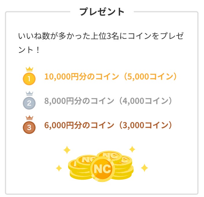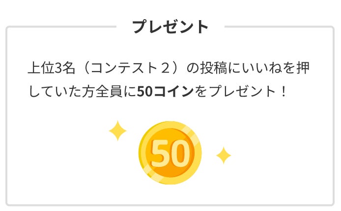 “コンテスト2”で上位3名に「いいね」した方に全員にコインをプレゼントいたします!