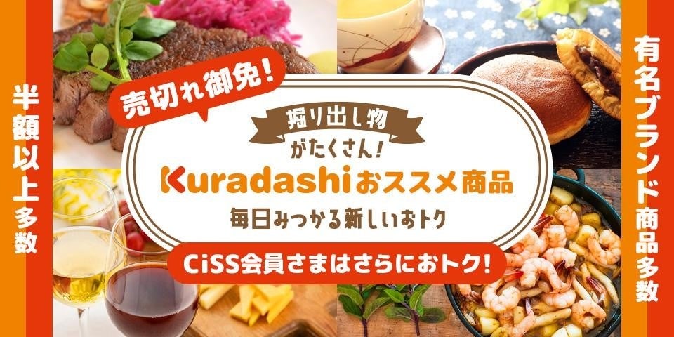 このたび、クラダシとシーアイ・ショッピング・サービスが協働し、CiSSオフィシャルサイト内に出店することとなりました。まだ食べられるにもかかわらず捨てられてしまう可能性のある食品などを、CiSSの会員の方々におトクに販売いたします。出店時には期間限定のCiSS会員特典として、ソーシャルグッドマーケット「Kuradashi」を特別価格でお楽しみいただけるクーポンを提供いたします。