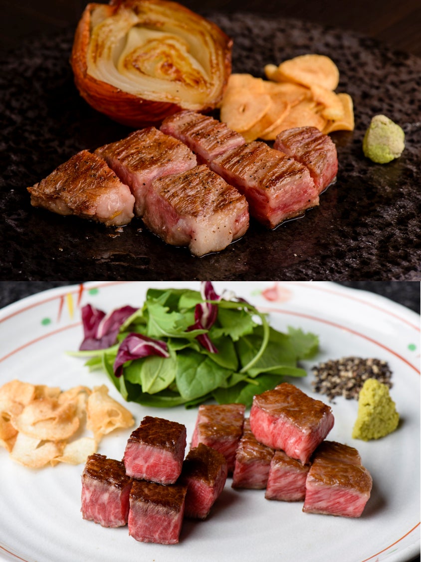 ②【人気NO.1】A5黒毛和牛霜降肉と赤身肉のステーキコース