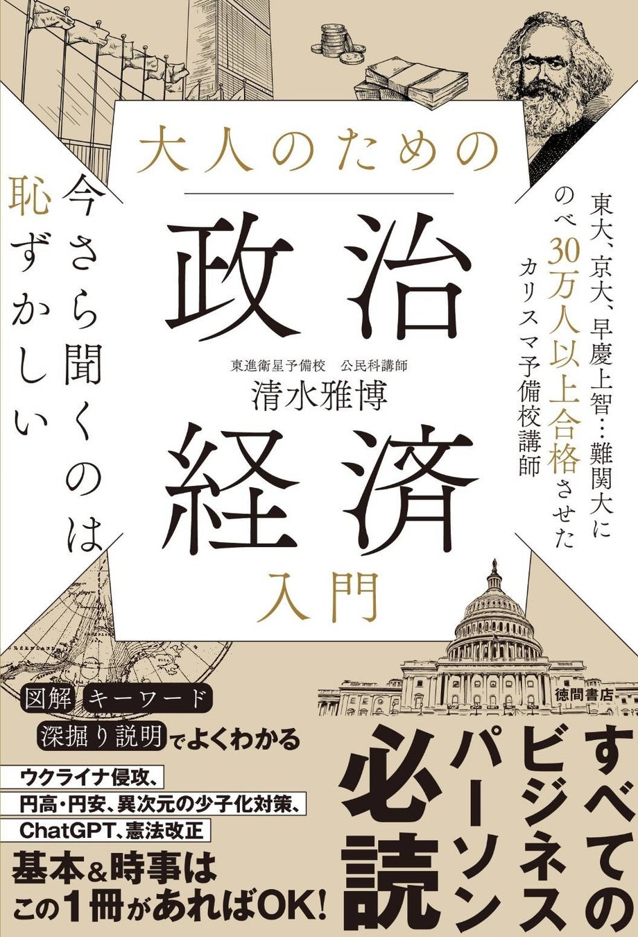 解説するのは、東大・早慶上智など難関大学へのべ30万人以上も合格させたカリスマ予備校講師である清水雅博先生。「図解」「キーワード」「深掘り説明」を駆使し、政治・経済・社会問題の本質を基本からわかりやすく説明しているので、社会生活を営む上で本当に必要な理解力・洞察力を高めることができます。