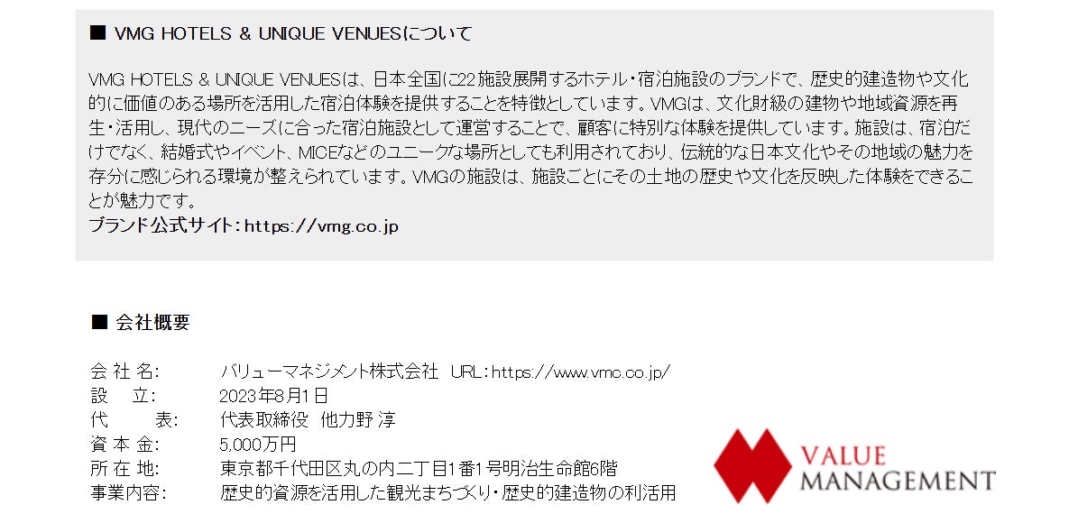 「高台寺 極 -KIWAMI-」は、迎賓館や洋館、邸宅といった歴史的価値の高い建造物や文化財を、当時の趣を残しながら現代に再生する、ホテルとユニークべニューのブランド、VMG HOTELS & UNIQUE VENUESが運営いたします。