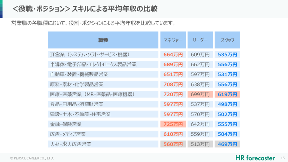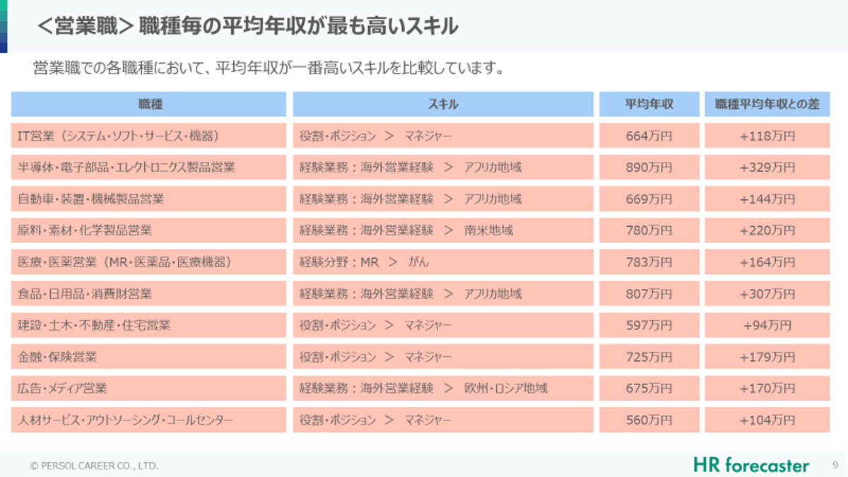 ■「保存版ハンドブック スキル年収マップ_営業職編」記載内容 ※一部抜粋