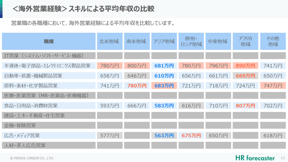 ③【職種×海外営業経験の平均年収】海外営業経験の中で、アフリカ地域での経験が平均年収を高める鍵に