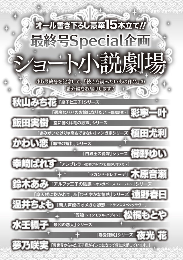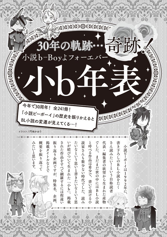 以来、たくさんの読者様から支持を受け、小説b-Boyでは才能溢れる人気小説家、人気イラストレーターが活躍され、綺羅星のような作品が、数限りなく生み出されてきました。