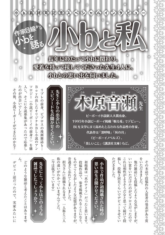 スペシャル・インタビュー「小bと私 ―作家目線から小bを語る」