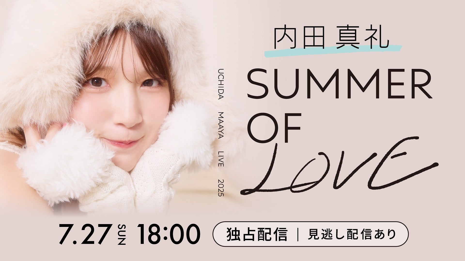 2012年に本格的な声優デビューを果たし、「中二病でも恋がしたい!」の小鳥遊六花役をはじめ、「アイドルマスター シンデレラガールズ」、「約束のネバーランド」、など、数々の話題作に出演。声優として大きく飛躍する一方で、2014年にはアーティストとしてメジャーデビューし、ライブツアーやフェス出演も精力的にこなし、これまでに10枚以上のシングルと複数のアルバムをリリース。ポップス、ロック、バラードなど多彩な楽曲を通じて、“歌う表現者”として幅広い層からの支持を集める内田真礼は昨年にアーティストデビュー10周年を迎え、さらなる飛躍が期待されています。そんな中、2017年の「UCHIDA MAAYA LIVE 2017 +INTERSECT♡SUMMER」以来、実に約8年ぶりに東京・日比谷野外大音楽堂でのライブが決定いたしました。さらにオンライン動画配信サービスHuluでは、2025年7月27日(日)に開催するライブ「UCHIDA MAAYA LIVE 2025 SUMMER OF LOVE」の模様を独占生配信いたします。またライブ配信後には見逃し配信も実施いたします。都心の空の下、特別な場所で行われる一夜限りの公演をHuluで何度でもお楽しみください。