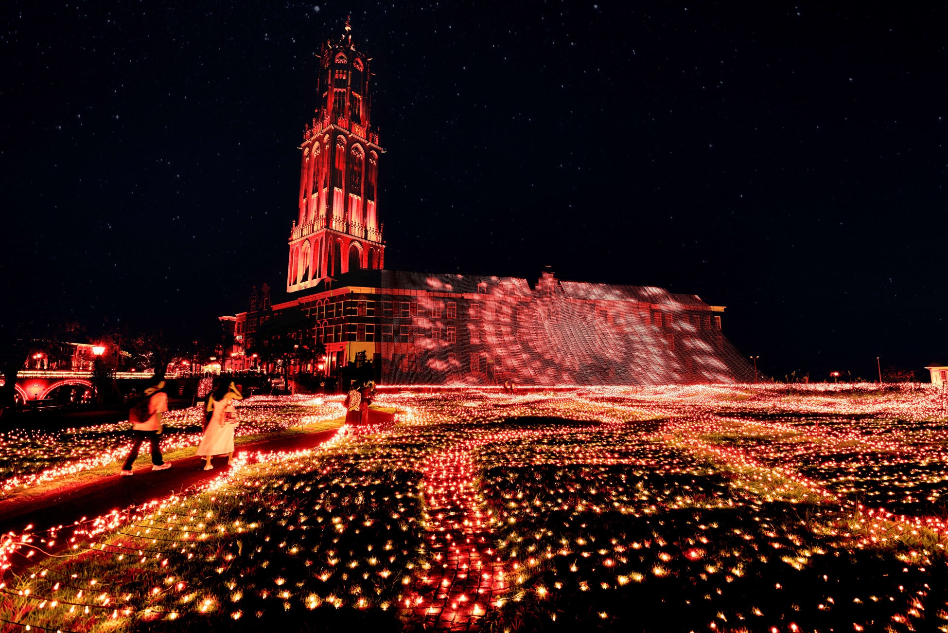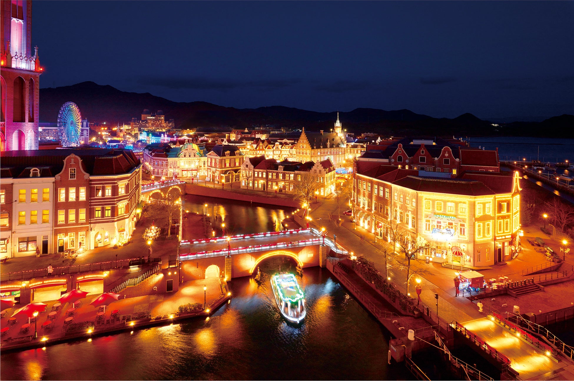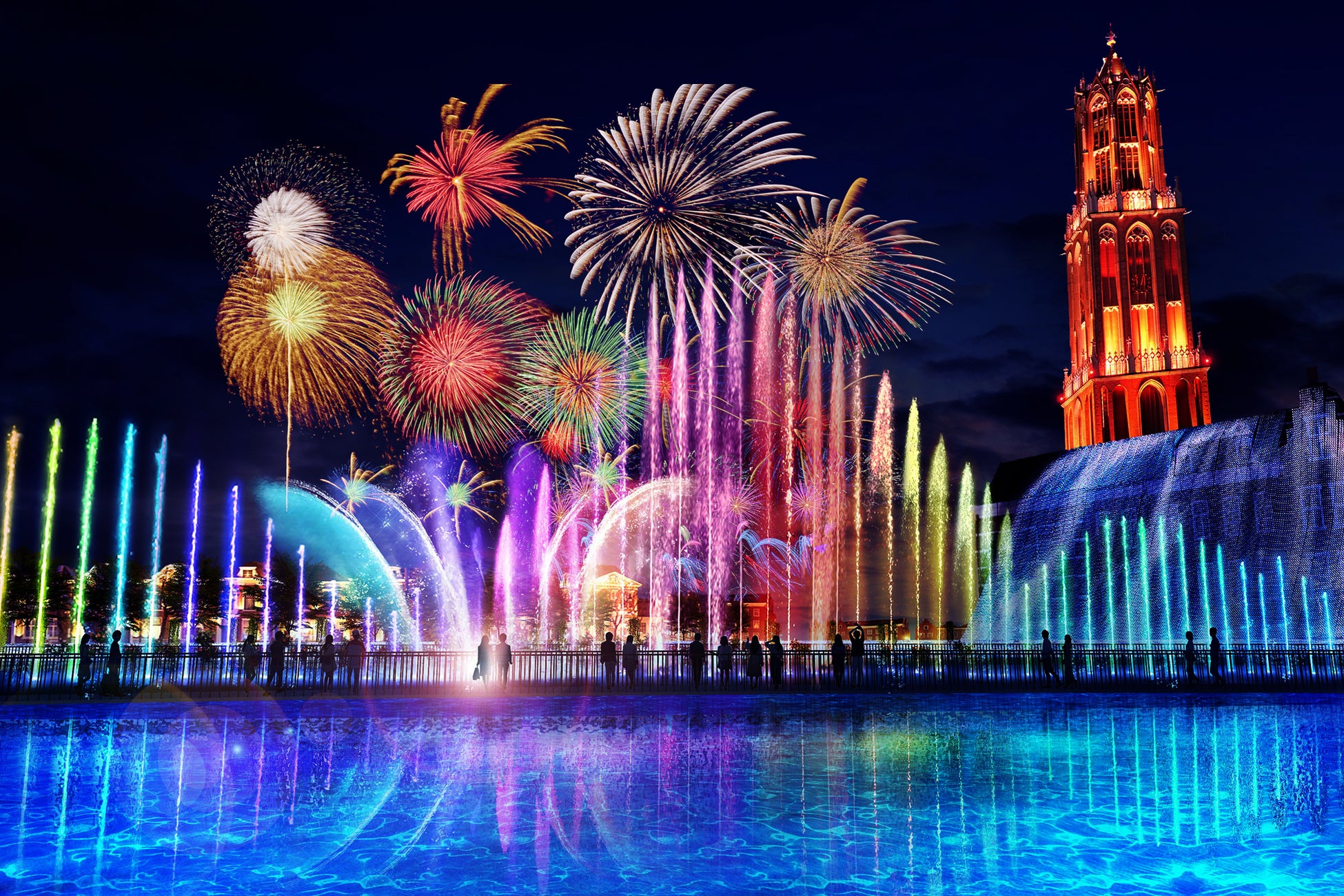 ハウステンボスのシンボルタワー「ドムトールン」と、日本最大※2の噴水ショーをゆっくりと観覧することができる「ウォーターガーデン」がイベントスタート同日4月27日(土)から新登場いたします。夜になると昼間の雰囲気が様変わりし、噴水ショーはライトアップされ、さらに楽しみ方が倍増します。