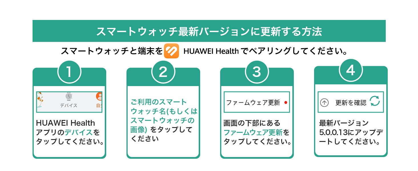 現在ご使用中の『HUAWEI WATCH Ultimate』は、すでに11月下旬より順次アップデート通知が開始されており、12月中にはすべてのお客様に専用スマートフォンアプリ「HUAWEI Health」を通してアップデート通知が届く予定です。
