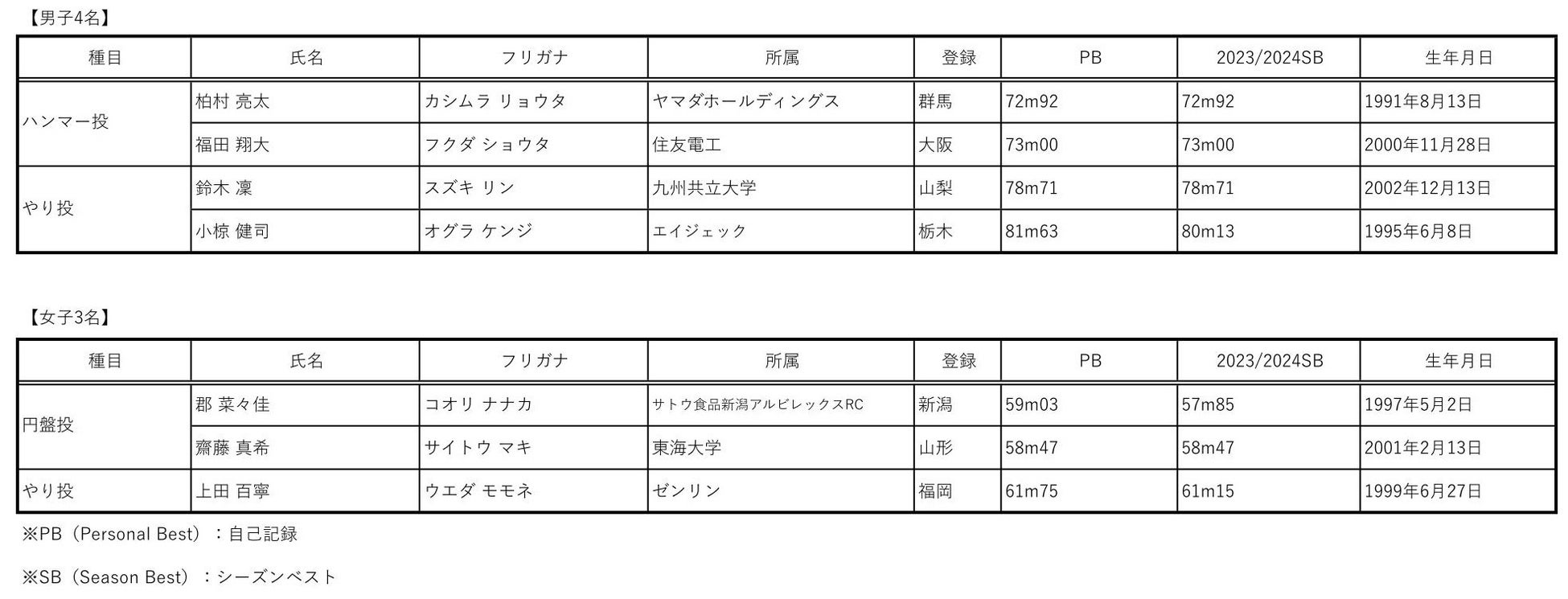 【木浦2024アジア投擲選手権】 日本代表選手が決定:世界選手権日本代表小椋、齋藤、上田など7名が参戦!パリオリンピック代表への挑戦!
