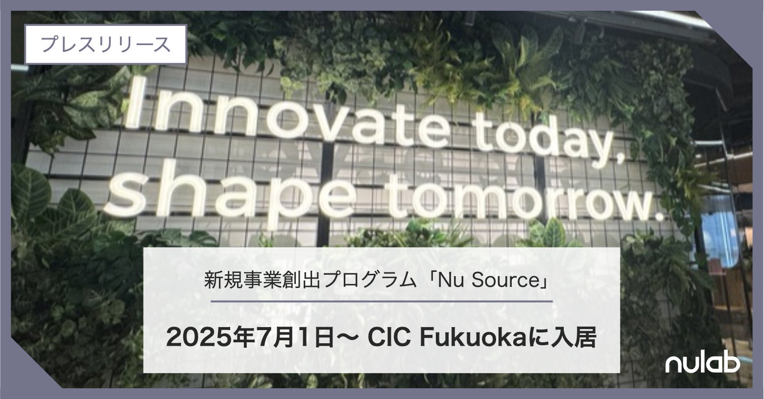 株式会社ヌーラボ(本社:福岡県福岡市、代表取締役:橋本正徳、以下 ヌーラボ) は、新規事業創出プログラム「Nu Source」を運営するチームを中心に、2025年7月1日から福岡市のスタートアップ支援施設「CIC Fukuoka」に新たな活動拠点を設置します。ヌーラボは、この新たな活動拠点を通じ、入居者や入居企業とのコラボレーションにより、事業創造を加速させることを目指します。