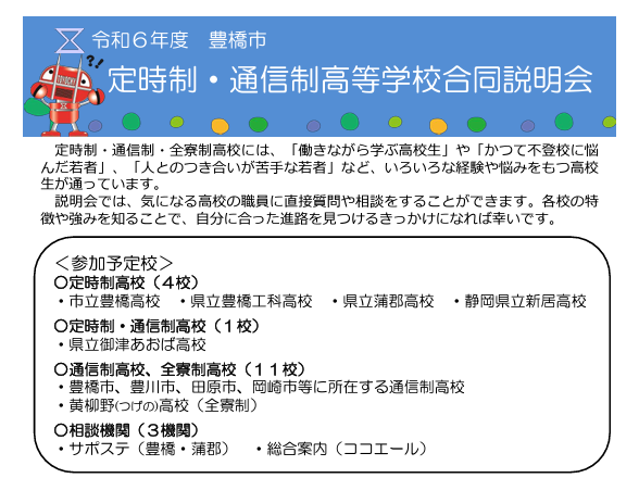 【申込不要&入退場自由】東三河地方の学校が一堂に揃うのはこの日だけ!定時制・通信制高等学校合同説明会を開催します10月6日(日曜日)