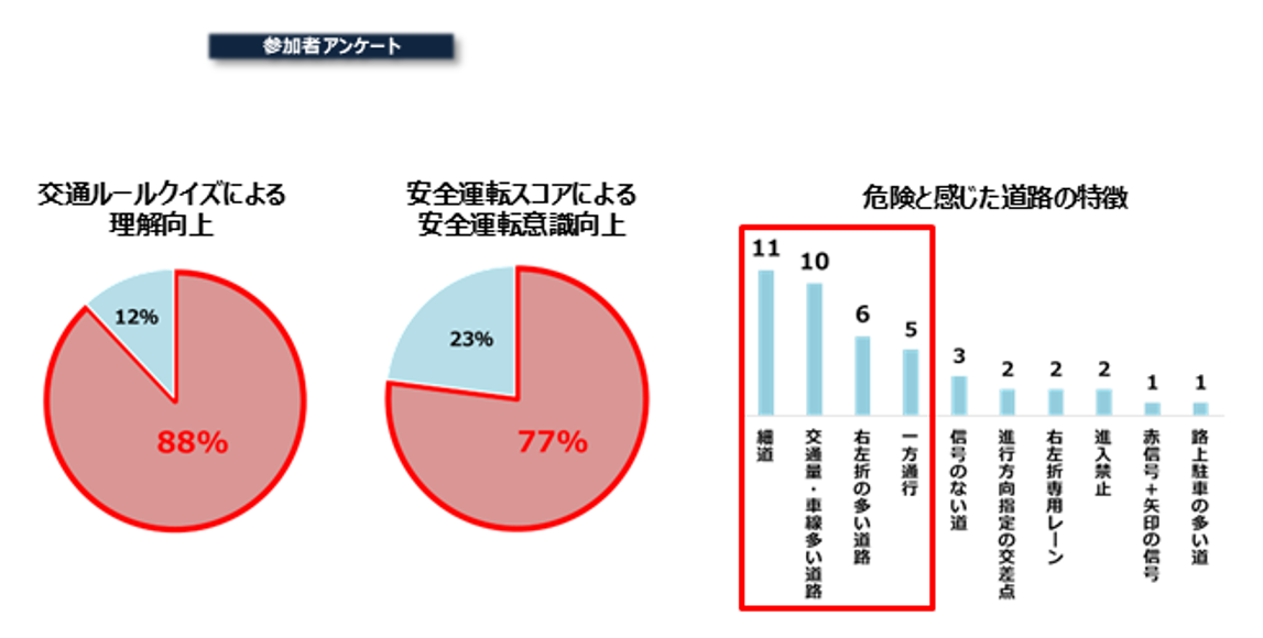 ・「交通ルールクイズ」「安全運転スコア」の利用により、参加者の約8割で安全運転への意識が向上