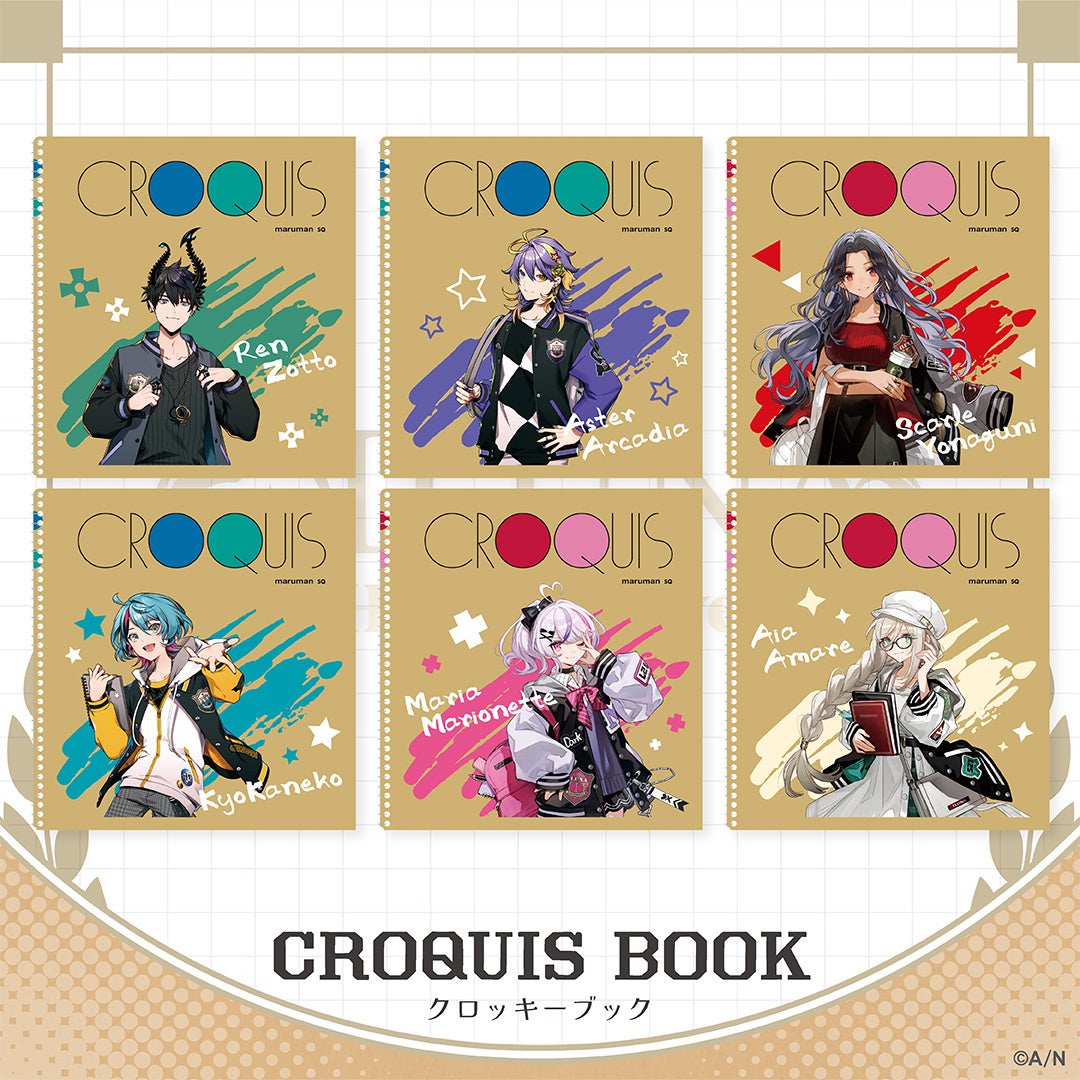 ラインナップは描き下ろしビジュアルを使用したアクリルスタンド、大きめサイズの缶バッジ、クロッキーブック、ランダム学生証風カードや、ラバーネームキーホルダー、ワッペンバッジの計6種類。