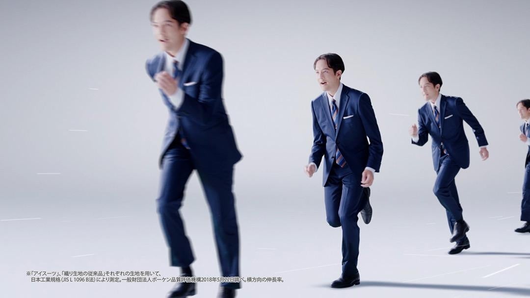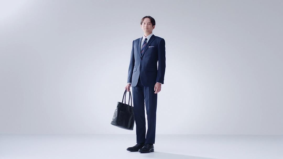 ■スーツ姿での大きなジャンプが“きちんと見えて、動きやすい”を表現した新CMで商品特長をアピール